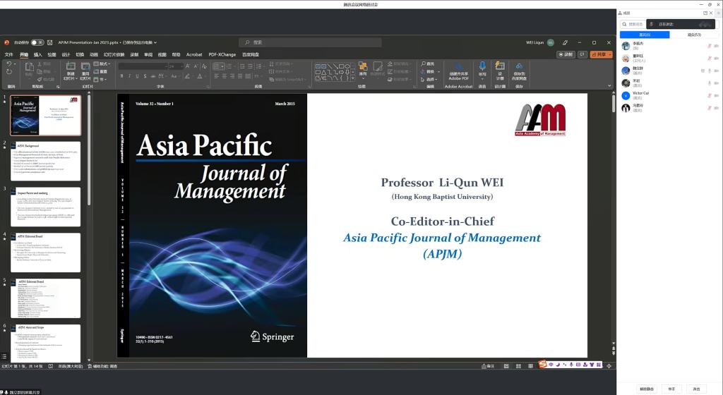 4月1日,由亚太管理学报 (《Asia Pacific Journal of Management》)主办、成人自拍 承办的论文研讨工作坊成功举办。研讨会采用线上腾讯会议的形式,邀请了《亚太管理学报》各领域资深编辑的参与,包括...