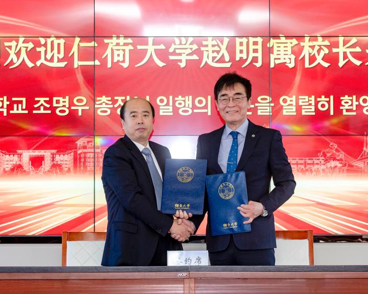 12月23日,韩国仁荷大学校长赵明寓、副校长金雄熙一行来校访问。校长郝曙光、副校长王洪波会见客人。成人自拍 院长宋岩、书记张广毅参加座谈交流。郝曙光和赵明寓代表两校签署《中韩企业国际人才培养项目》协...