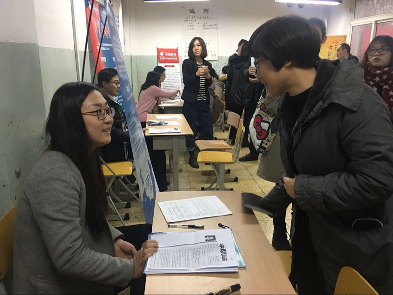 2017届毕业生就业工作以“三定两专”理念为指导,举办多场系列专场双选会。“三定”即定点、定期、定向,每两周在文科馆103,立足专业分类,有针对性地举办招聘会。“两专”即由专职辅导员负责就业工作,辅以学生会创业实践部专项负责,打造学院就业工作团队,构建小而精的高效双选会新机制。学院领导给予双选会高度重视,学院党总支书记丁峰、副书记赵卉妍莅临现场,与企业交流,给予毕业生就业建议。