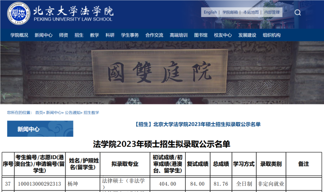 祝贺成人自拍 2019级本科生杨坤同学被北京大学法硕专业(非法学)拟录取,成功圆梦北大!