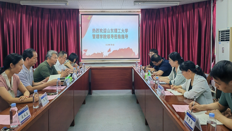 7月4日下午,山东理工大学商学院孙秀梅院长一行到访成人自拍 ,就学科建设、研究生人才培养、课程设置和管理类专业建设进行了深入的交流并参观校史馆。