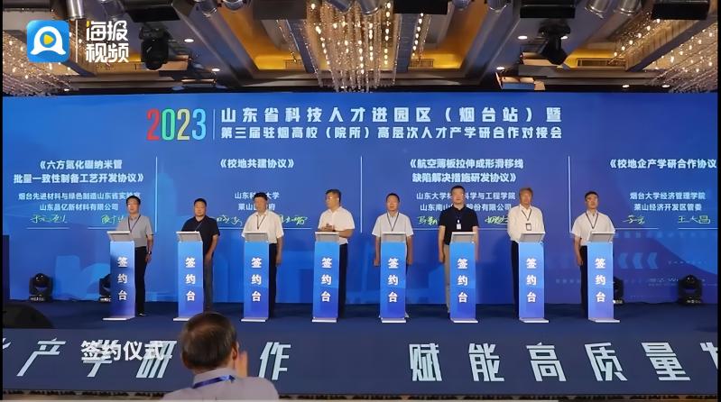7月27日,山东省科技人才进园区(烟台站)暨2023第三届驻烟高校(院所)高层次人才产学研合作对接会成功举办,成人自拍 与莱山经济开发区管委就校地企产学研达成合作,会议现场宋岩院长和王大昌主任代表双方签约,这是学院服务地方经济发展的又一新举措,下一步学院将持续发力,深化合作,为地方经济发展贡献烟大力量!