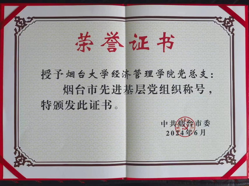 喜讯!学院党总支荣获烟台市先进基层党组织称号。
