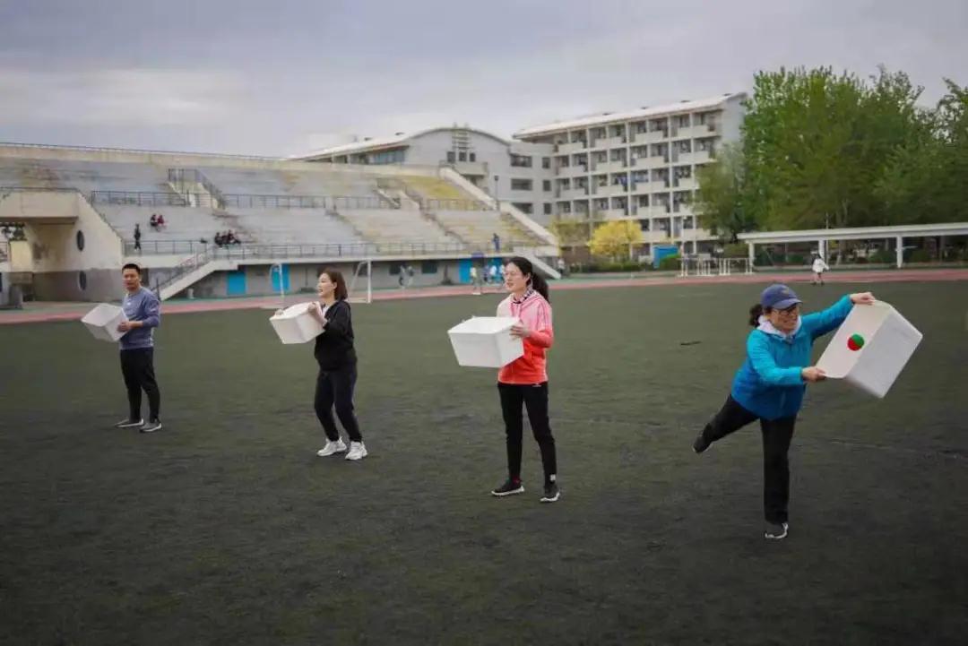 跑道上,运动健儿的身影飞驰而过;看台上,同学们的呐喊加油声一浪高过一浪。跳高、跳远、铅球,每一个赛点都展现着青春的风采,彰显着蓬勃的力量。在操场中央,教职工的趣味比赛也热火朝天。“推铁环接力”“扔沙包”“定点射门”“推球跑”“五人六足”……老师们精神饱满、精诚团结、顽强拼搏、相互鼓励,身体力行地诠释着永不言弃的竞技体育精神。