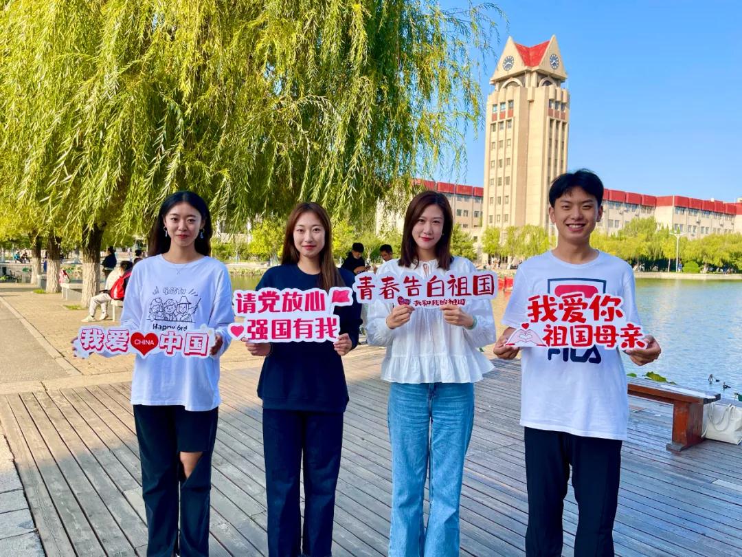永葆一颗热爱祖国的赤子之心,谱好的责任担当之曲。在国庆节来临之际,学院组织开展形式多样的庆祝活动。团委、学生会同学们组织新生开展“青春告白祖国”活动以及“我与祖国合张影”活动,同学们手持“我爱你祖国”“青春告白祖国”“请党放心强国有我”“祝福祖国”等标语牌,在烟大校园内打卡,诚挚地祝福祖国母亲永远昌盛繁荣。用音乐回顾历史,用歌声激发初心。“五星红旗迎风飘扬,胜利歌声多么响亮……”随着气势恢宏的旋律,新生同学们聚集在 “升腾”,挥舞着手中的国旗,随着音乐放声高歌《歌唱祖国》,表达着对祖国的热爱和美好憧憬。