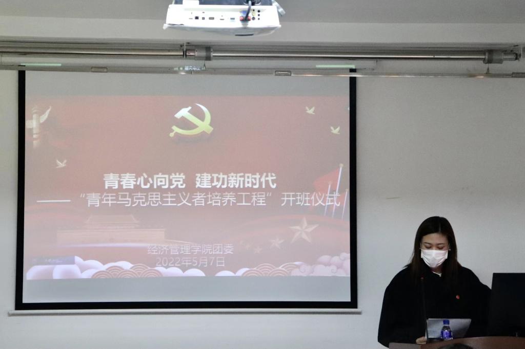 举办2022年“马克思主义者培养工程”开班仪式,学院党总支书记张广毅应邀主讲,以“做一名有担当的新时代青年”为题,为全体青马班学员上了一堂生动的思政课,开班仪式由辅导员李心月主持。