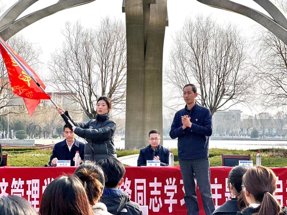 韩宇航同学代表全体经管青年作表态发言,并向全体志愿者发出倡议,要大力弘扬雷锋精神,做经管文化的传承者、做志愿服务的践行者、做文明新风的引领者,主动承担社会责任,热忱关爱他人,自信自强、守正创新、踔厉奋发、勇毅前行,争做具有家国情怀、担当精神、崇实品格、创新素养的新时代青年。