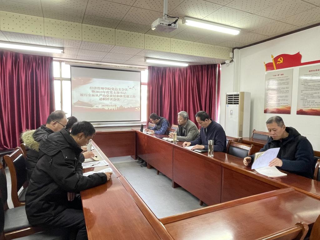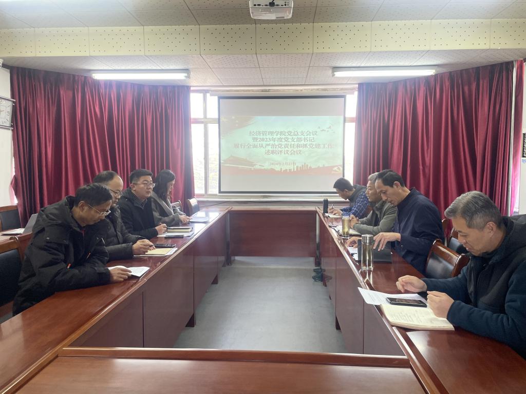 党总支召开2023年度基层党支部书记履行全面从严治党主体责任和抓党建工作述职评议,会议由学院副处级组织员姜波主持,学院党总支成员和5个党支部书记参会。