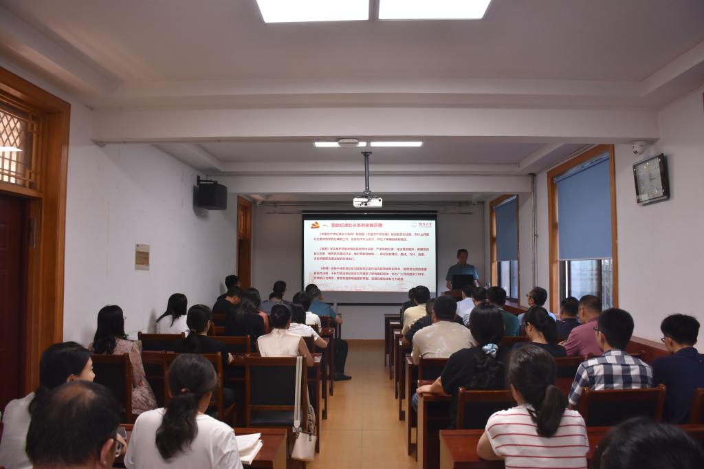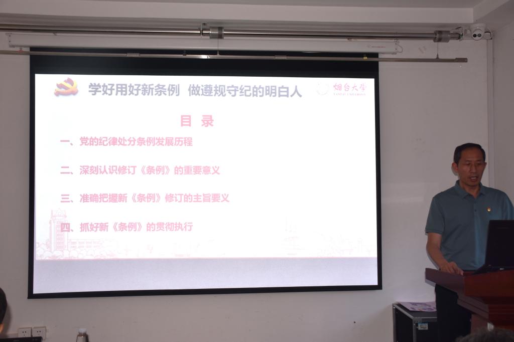 党总支书记张广毅为全体教师党员作《学好新条例,做个明白人》党纪学习专题党课。